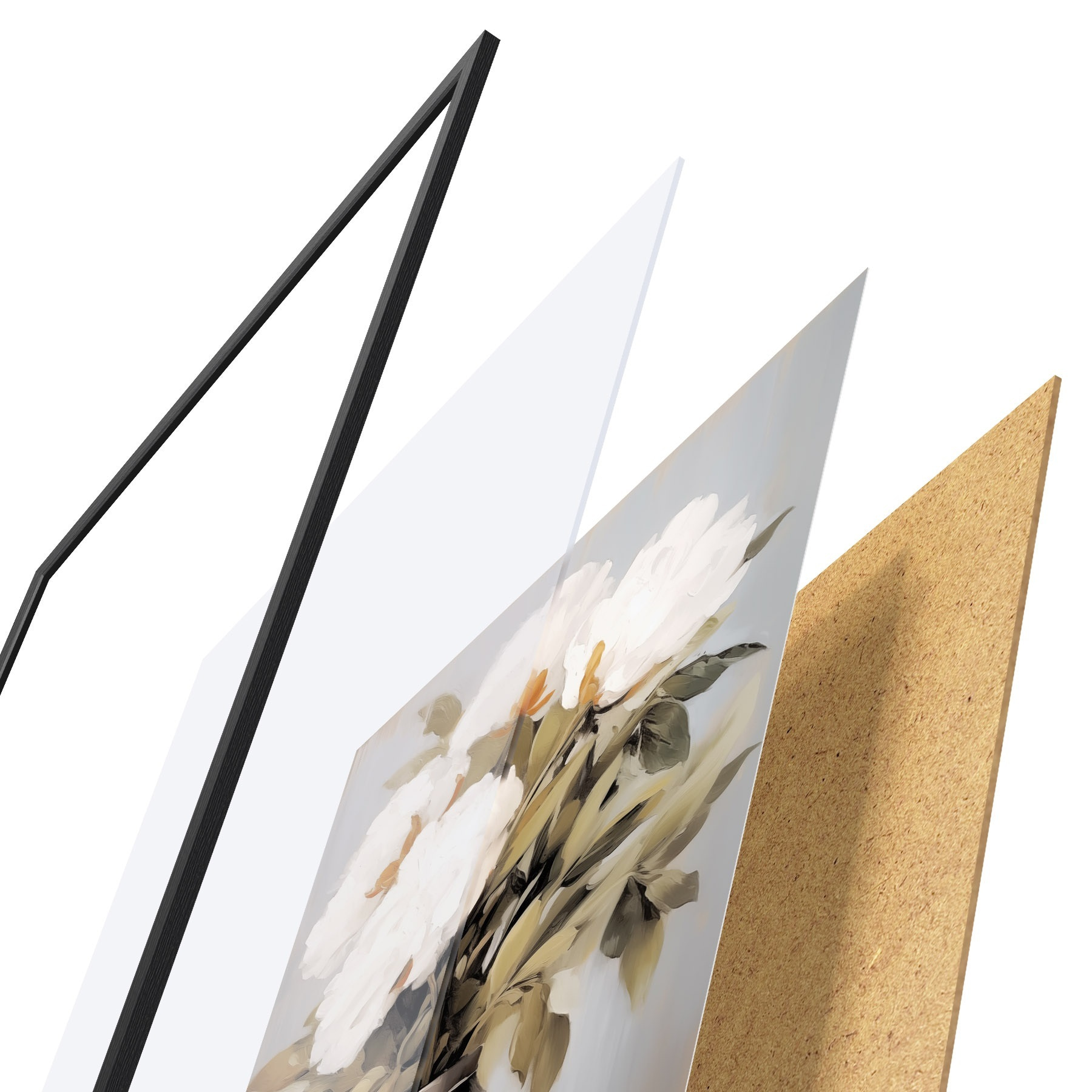 Il poster è composto da cornice, plexiglass, immagine stampata e supporto in truciolato. Il poster può essere immediatamente appeso alla parete grazie ai supporti sul retro.