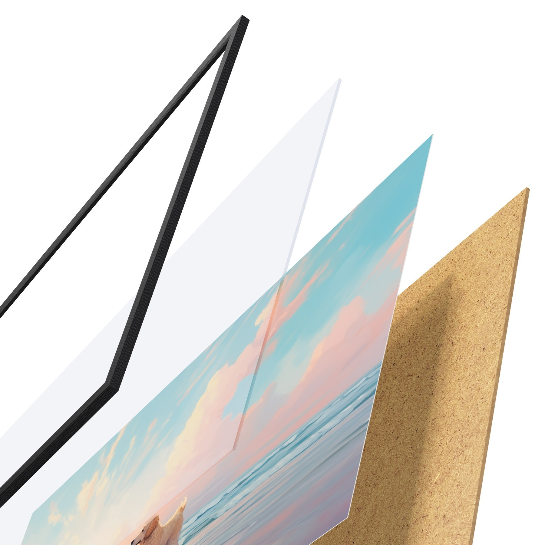 Il poster è composto da cornice, plexiglass, immagine stampata e supporto in truciolato. Il poster può essere immediatamente appeso alla parete grazie ai supporti sul retro.