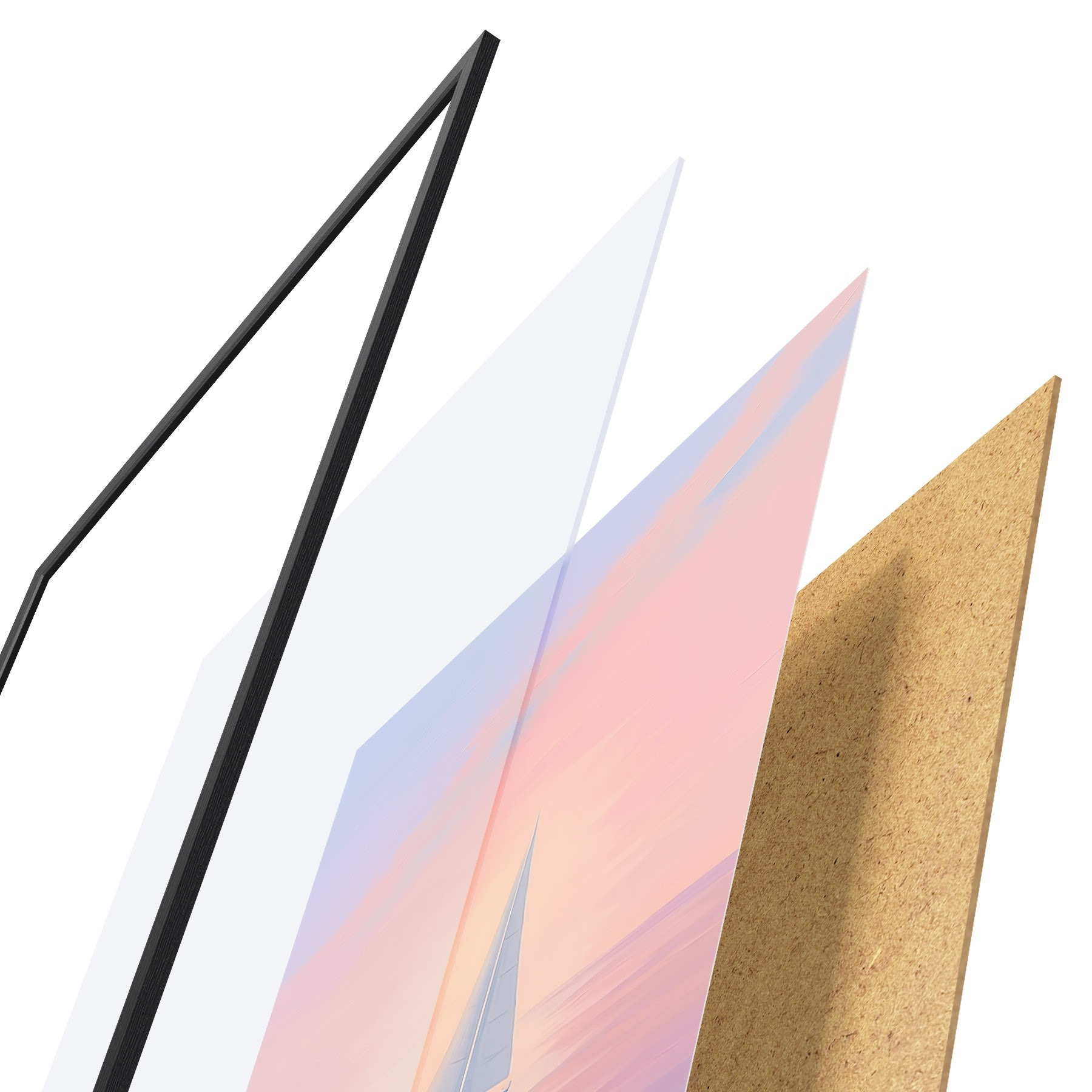 Il poster è composto da cornice, plexiglass, immagine stampata e supporto in truciolato. Il poster può essere immediatamente appeso alla parete grazie ai supporti sul retro.