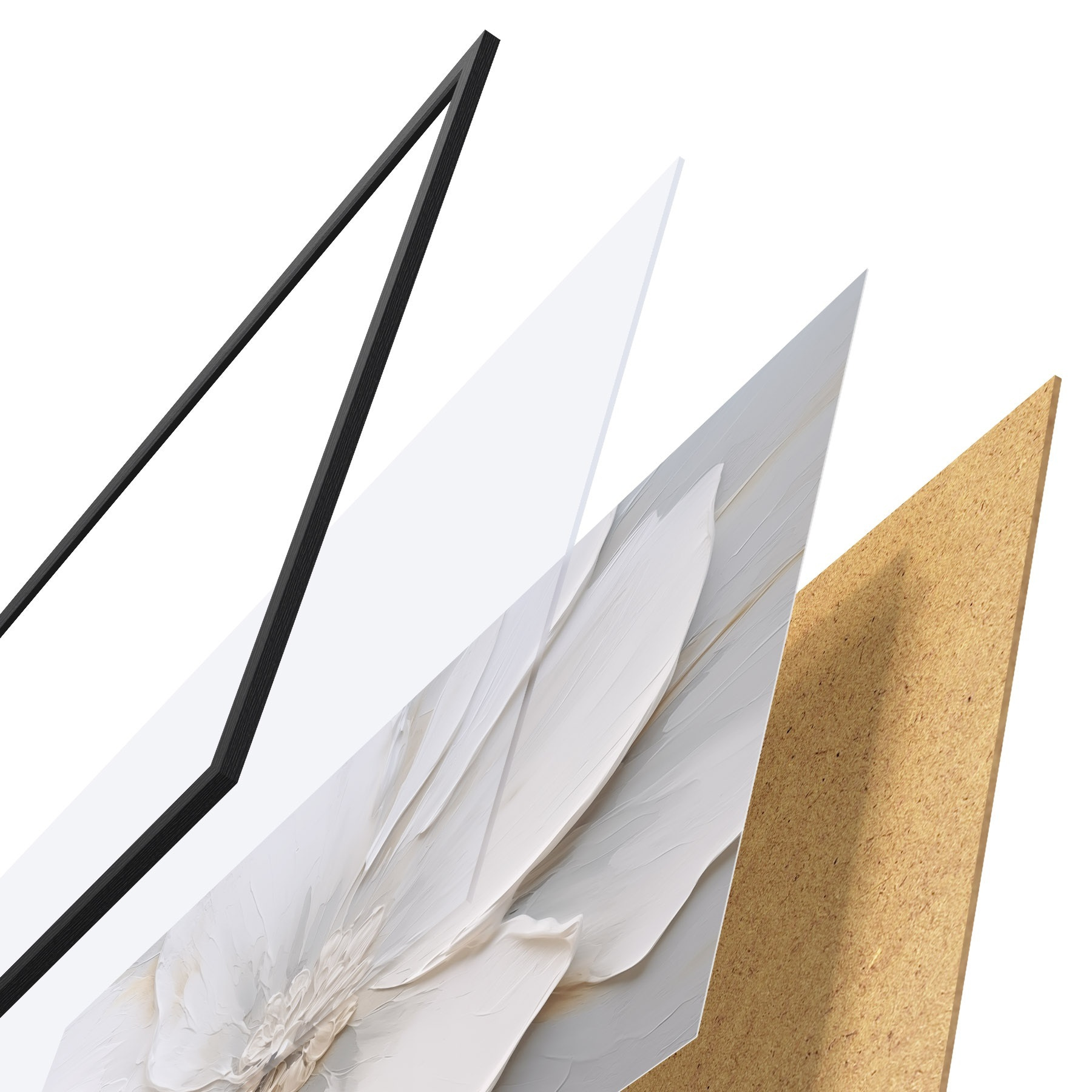 Il poster è composto da cornice, plexiglass, immagine stampata e supporto in truciolato. Il poster può essere immediatamente appeso alla parete grazie ai supporti sul retro.