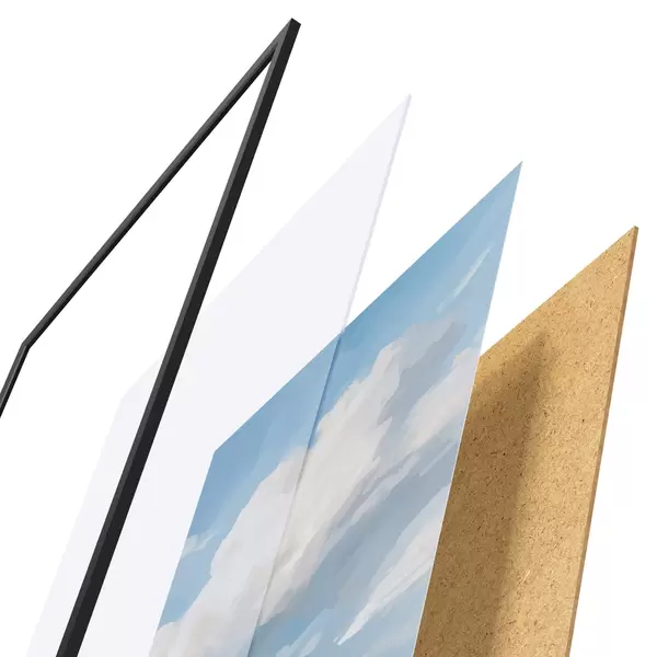 Il poster è composto da cornice, plexiglass, immagine stampata e supporto in truciolato. Il poster può essere immediatamente appeso alla parete grazie ai supporti sul retro.