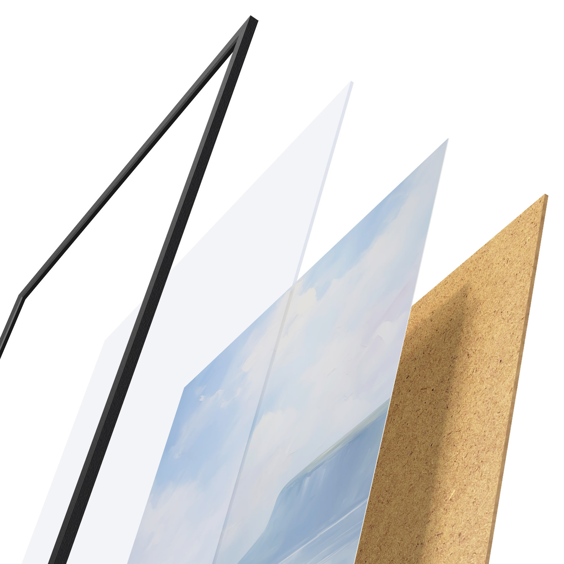 Il poster è composto da cornice, plexiglass, immagine stampata e supporto in truciolato. Il poster può essere immediatamente appeso alla parete grazie ai supporti sul retro.