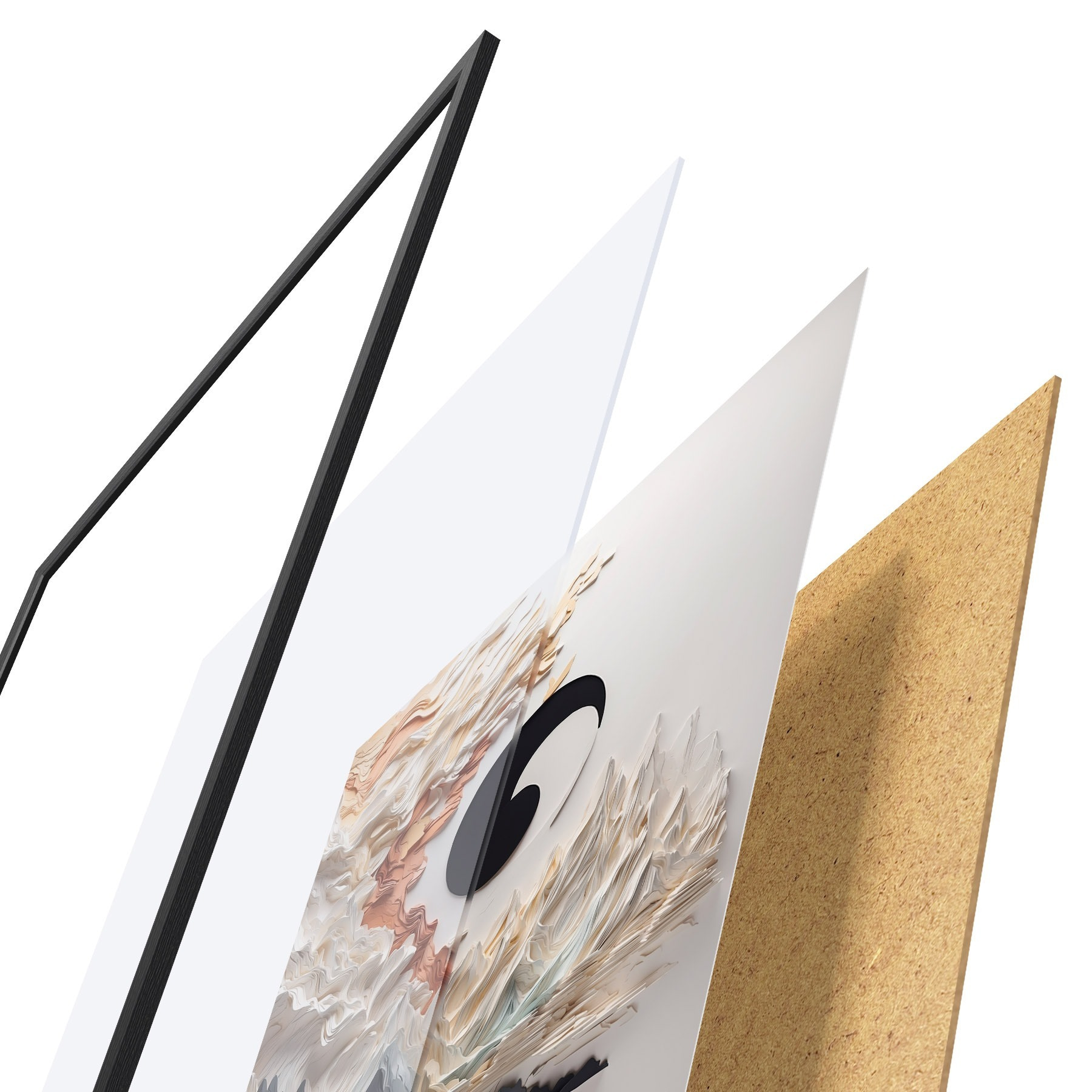 Il poster è composto da cornice, plexiglass, immagine stampata e supporto in truciolato. Il poster può essere immediatamente appeso alla parete grazie ai supporti sul retro.