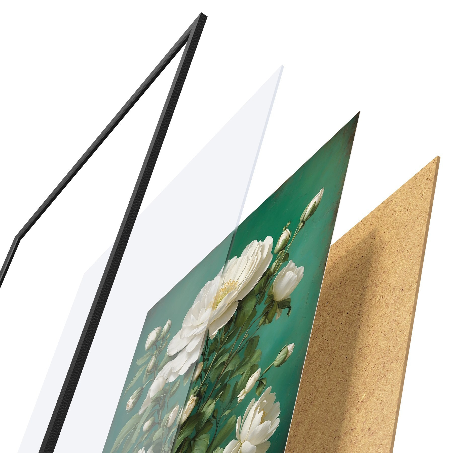 Poster Fiori di peonia color crema su sfondo verde f45491