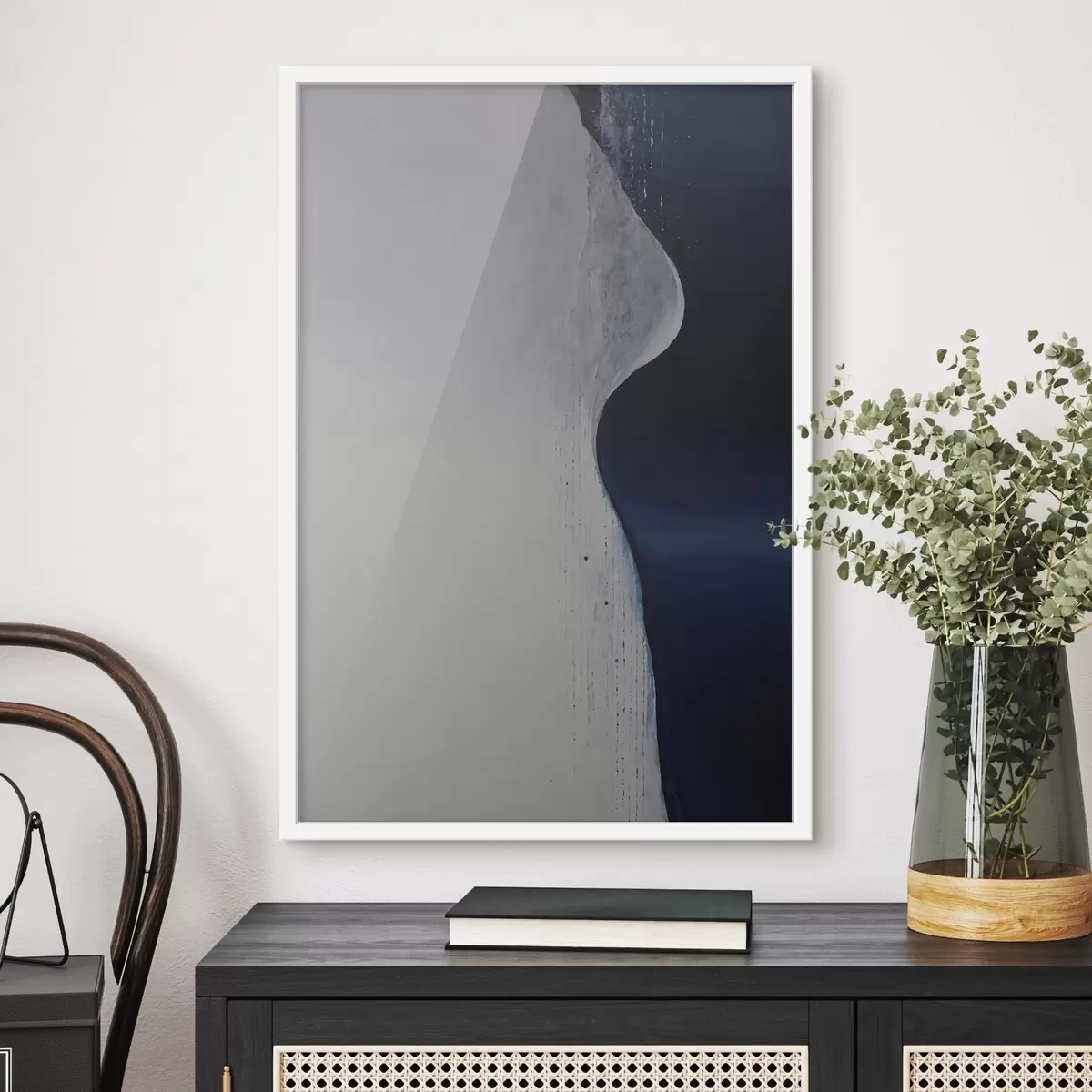 Poster Pittura astratta nei toni del bianco, del blu e del blu scuro Nr f45493