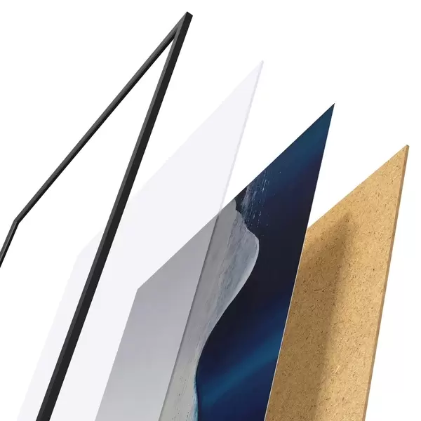 Il poster è composto da cornice, plexiglass, immagine stampata e supporto in truciolato. Il poster può essere immediatamente appeso alla parete grazie ai supporti sul retro.