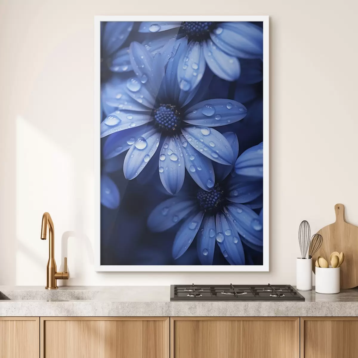 Poster Fiore blu con gocce d'acqua sui petali Nr f45499