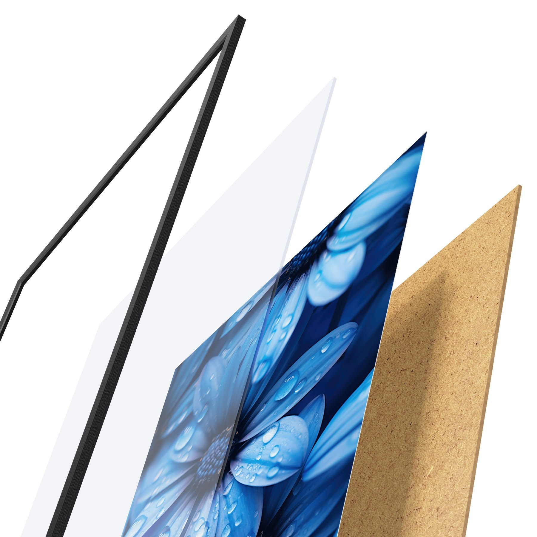 Il poster è composto da cornice, plexiglass, immagine stampata e supporto in truciolato. Il poster può essere immediatamente appeso alla parete grazie ai supporti sul retro.