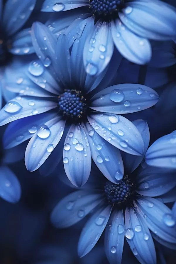 Poster Fiore blu con gocce d'acqua sui petali Nr f45499