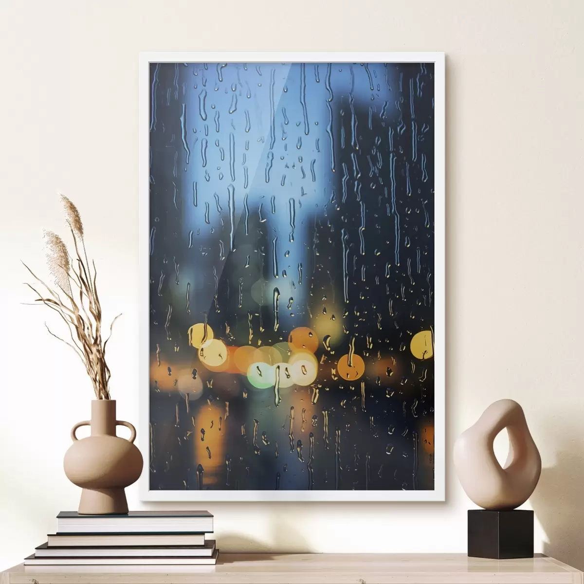 Poster Gocce di pioggia sulla finestra con le luci notturne f45500