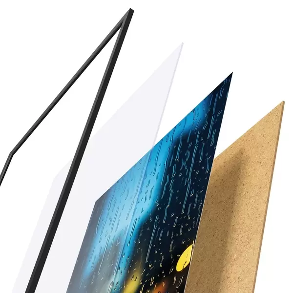 Il poster è composto da cornice, plexiglass, immagine stampata e supporto in truciolato. Il poster può essere immediatamente appeso alla parete grazie ai supporti sul retro.