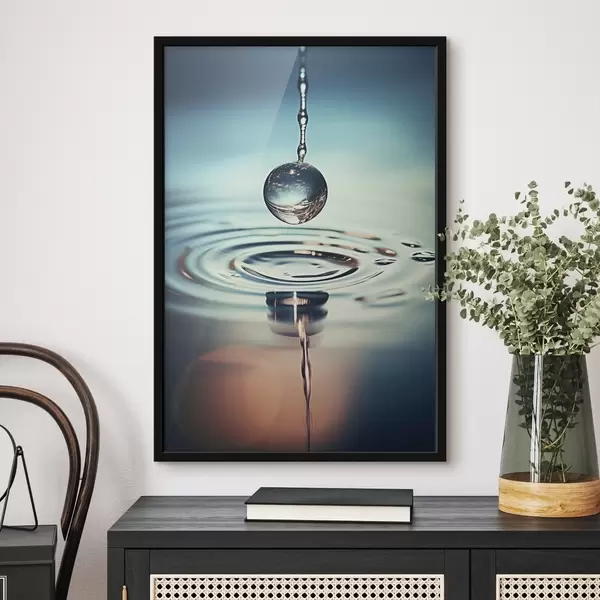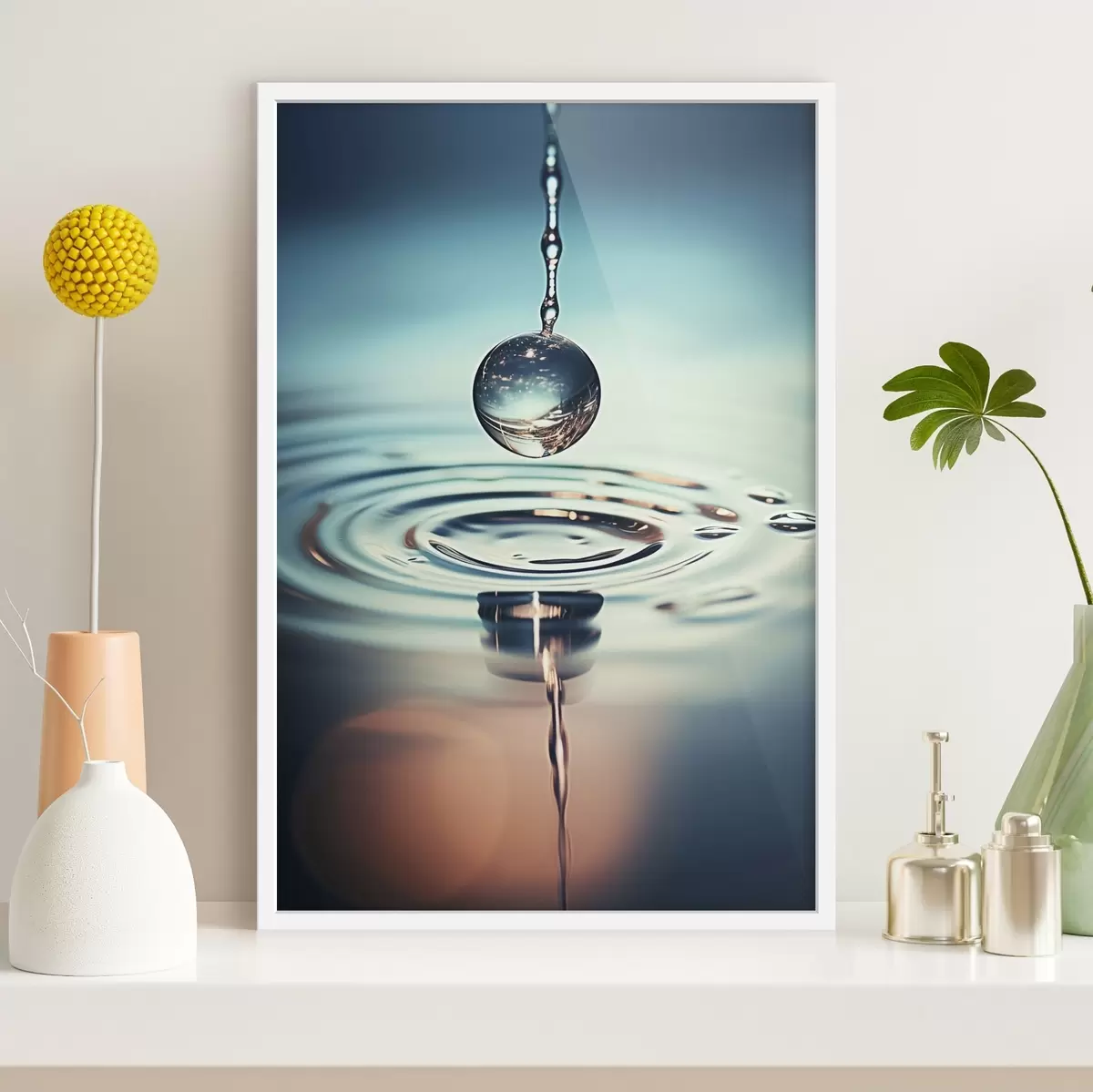 Poster Una goccia d'acqua che cade con lampi di luce f45501