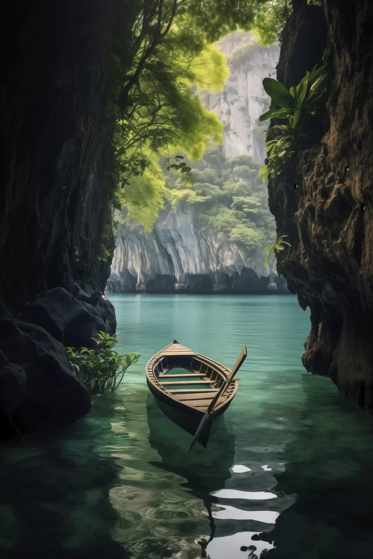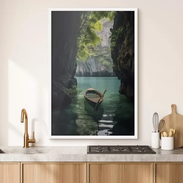 Poster Barca su acqua turchese tra le rocce Nr f45507