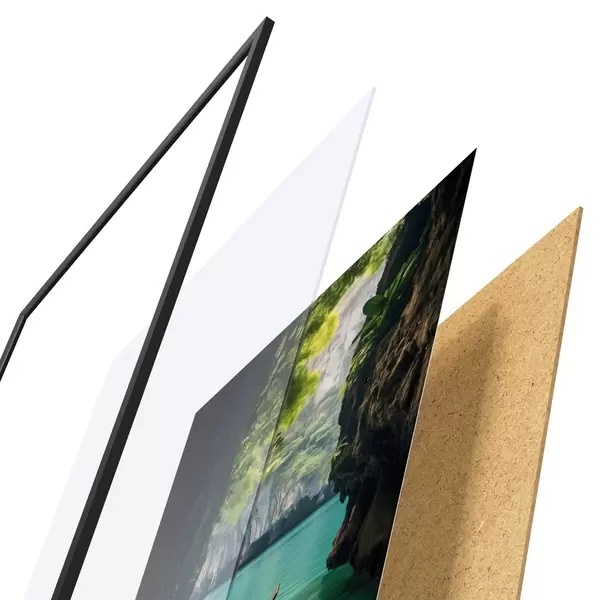 Il poster è composto da cornice, plexiglass, immagine stampata e supporto in truciolato. Il poster può essere immediatamente appeso alla parete grazie ai supporti sul retro.