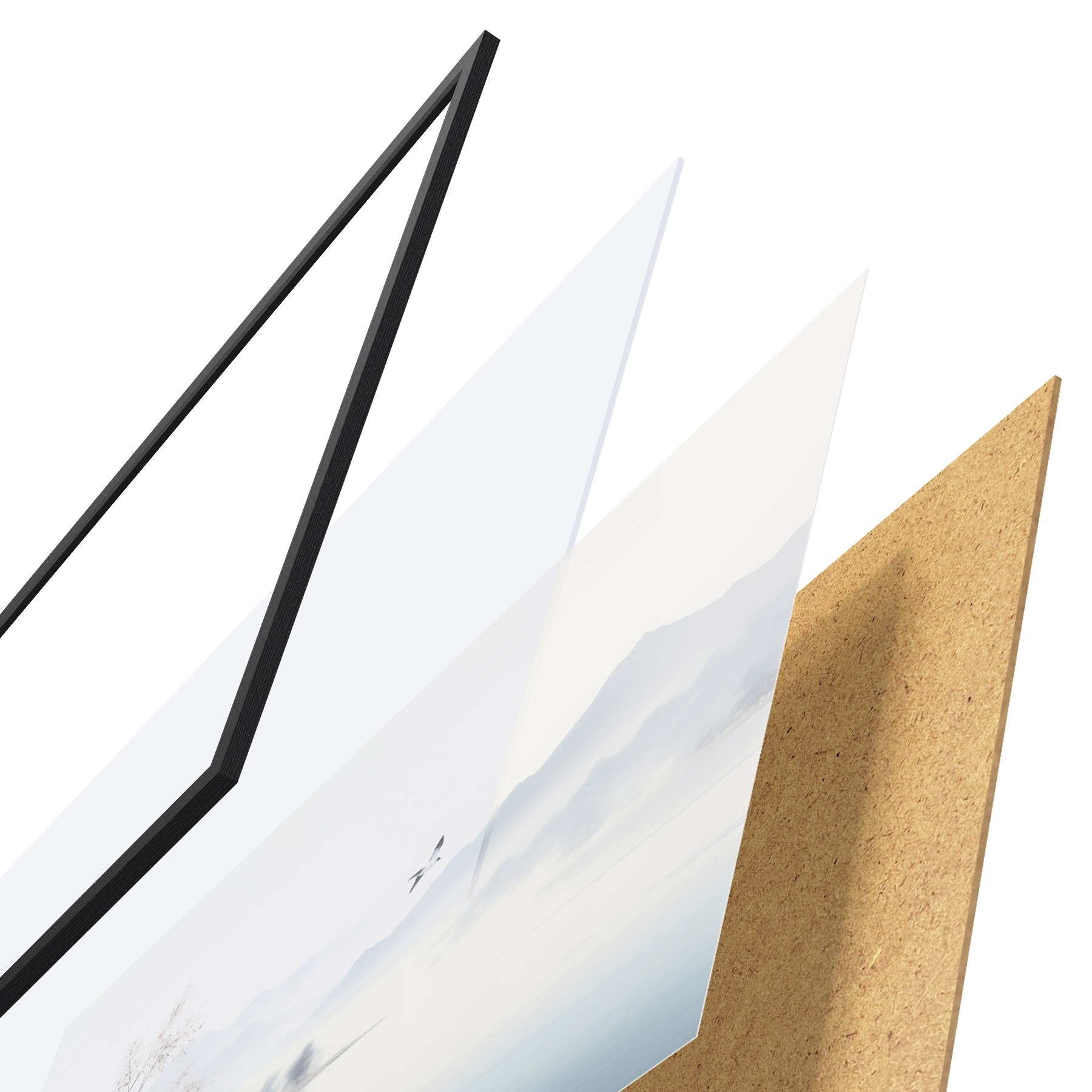 Il poster è composto da cornice, plexiglass, immagine stampata e supporto in truciolato. Il poster può essere immediatamente appeso alla parete grazie ai supporti sul retro.