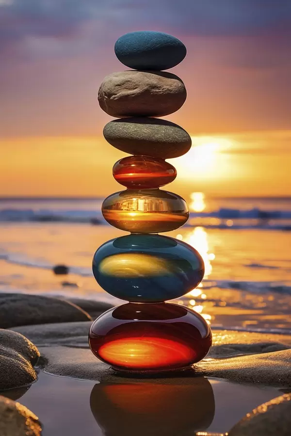 Poster Pietre accatastate sullo sfondo del tramonto Nr f45520