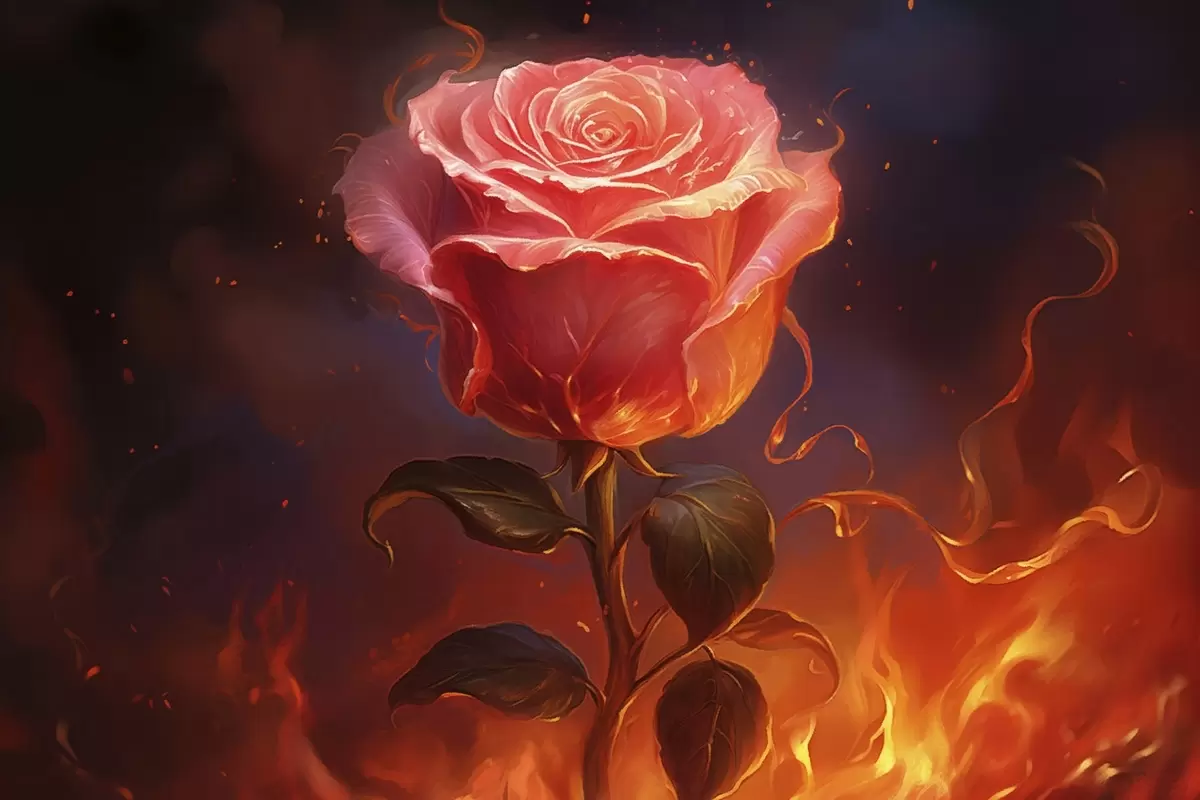 Poster Rosa rossa tra fuoco e scintille Nr f45523