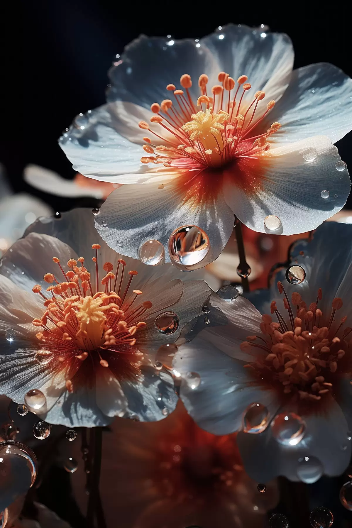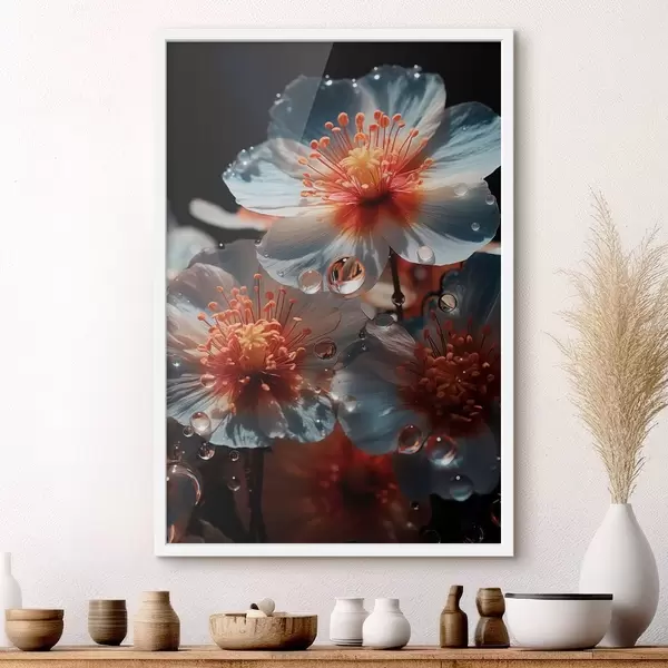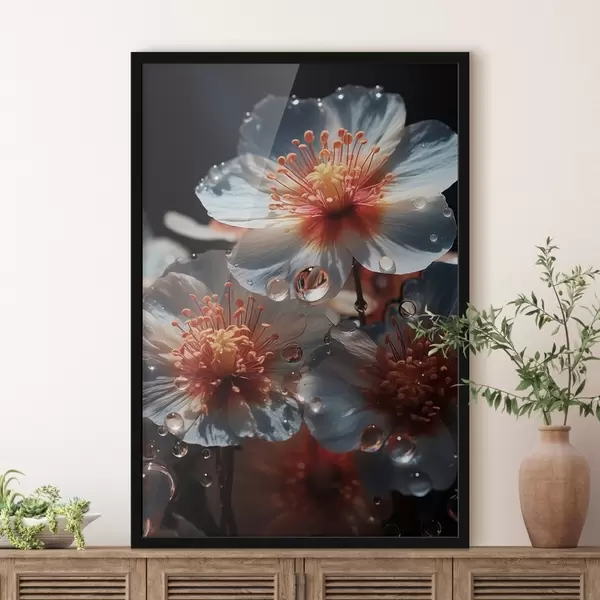 Poster Motivo floreale: bellezza dei petali con rugiada su sfondo scuro Nr f45529