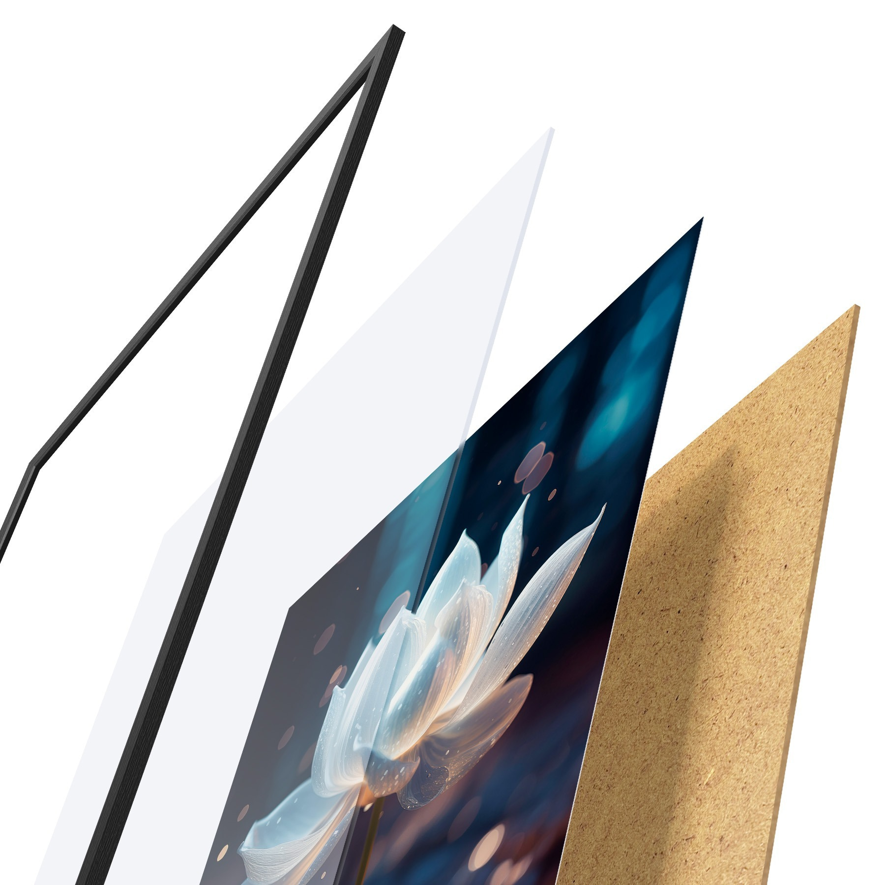 Il poster è composto da cornice, plexiglass, immagine stampata e supporto in truciolato. Il poster può essere immediatamente appeso alla parete grazie ai supporti sul retro.