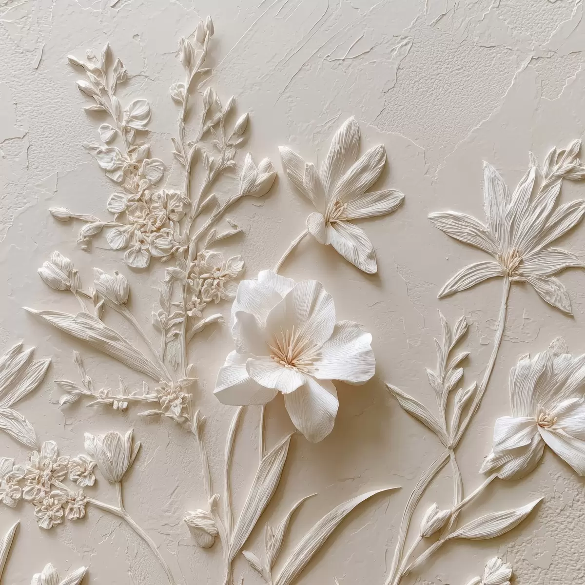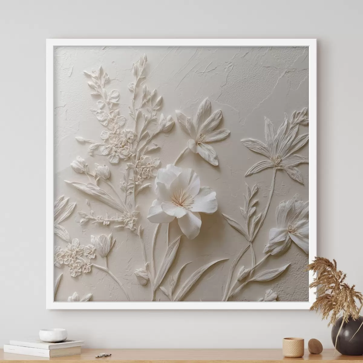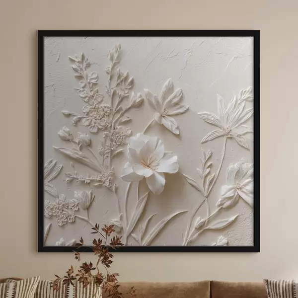 Poster Motivo floreale: stile bassorilievo con piante su sfondo chiaro f45536