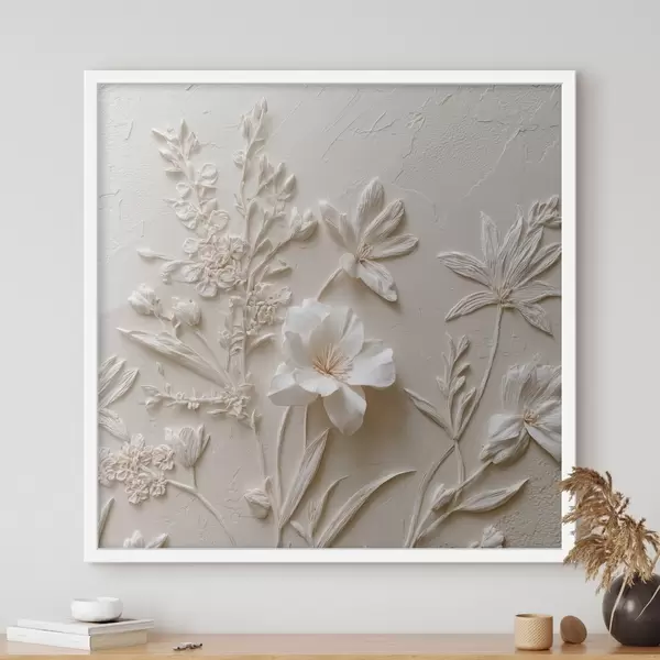 Poster Motivo floreale: stile bassorilievo con piante su sfondo chiaro Nr f45536