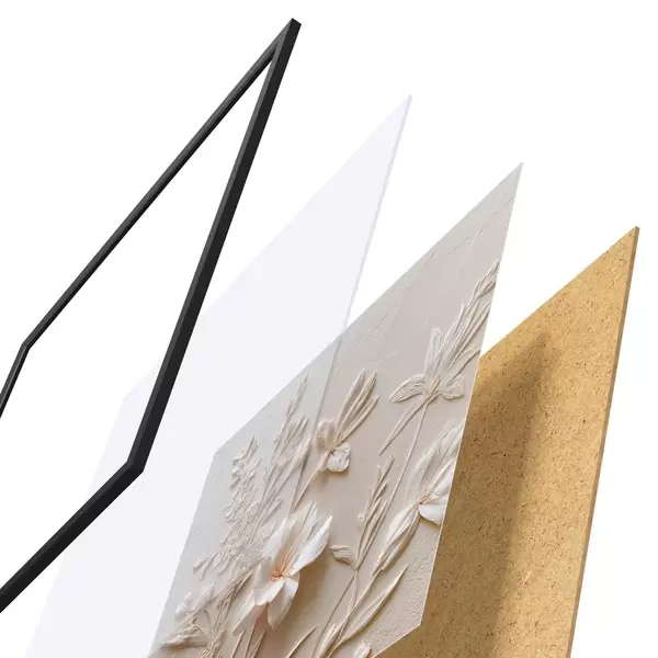 Il poster è composto da cornice, plexiglass, immagine stampata e supporto in truciolato. Il poster può essere immediatamente appeso alla parete grazie ai supporti sul retro.