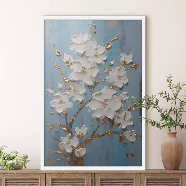 Poster Fiori bianchi su un ramo: motivo decorativo nei toni del blu chiaro Nr f45541