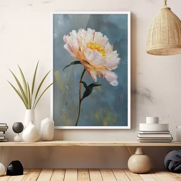Poster Fiore astratto: composizione nei toni del blu e del grigio f45542