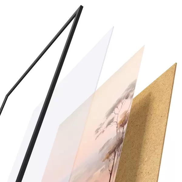 Il poster è composto da cornice, plexiglass, immagine stampata e supporto in truciolato. Il poster può essere immediatamente appeso alla parete grazie ai supporti sul retro.