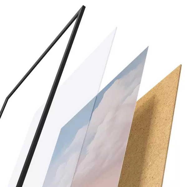 Il poster è composto da cornice, plexiglass, immagine stampata e supporto in truciolato. Il poster può essere immediatamente appeso alla parete grazie ai supporti sul retro.