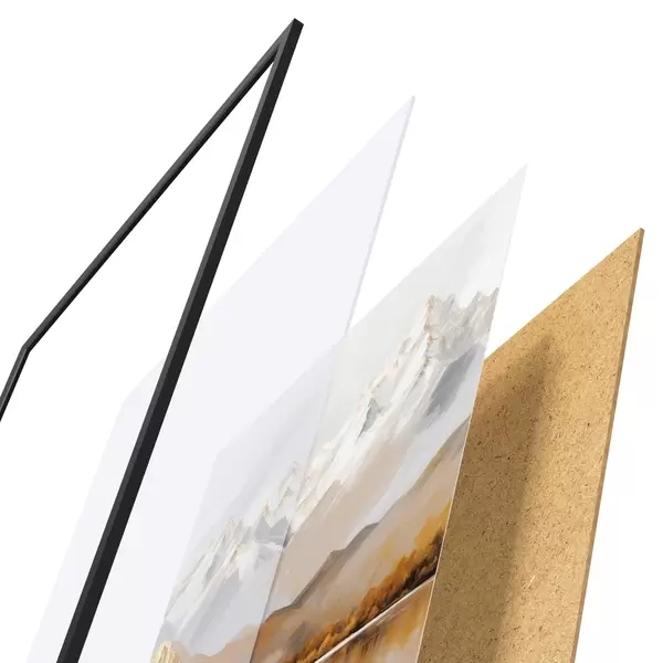 Il poster è composto da cornice, plexiglass, immagine stampata e supporto in truciolato. Il poster può essere immediatamente appeso alla parete grazie ai supporti sul retro.