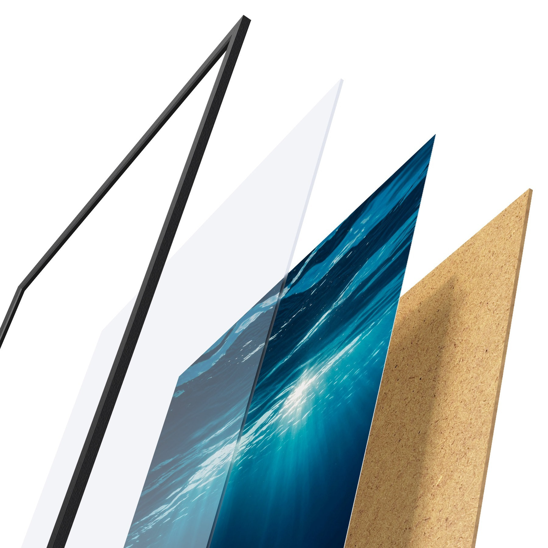 Il poster è composto da cornice, plexiglass, immagine stampata e supporto in truciolato. Il poster può essere immediatamente appeso alla parete grazie ai supporti sul retro.