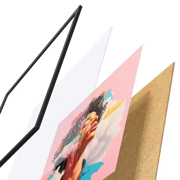 Il poster è composto da cornice, plexiglass, immagine stampata e supporto in truciolato. Il poster può essere immediatamente appeso alla parete grazie ai supporti sul retro.