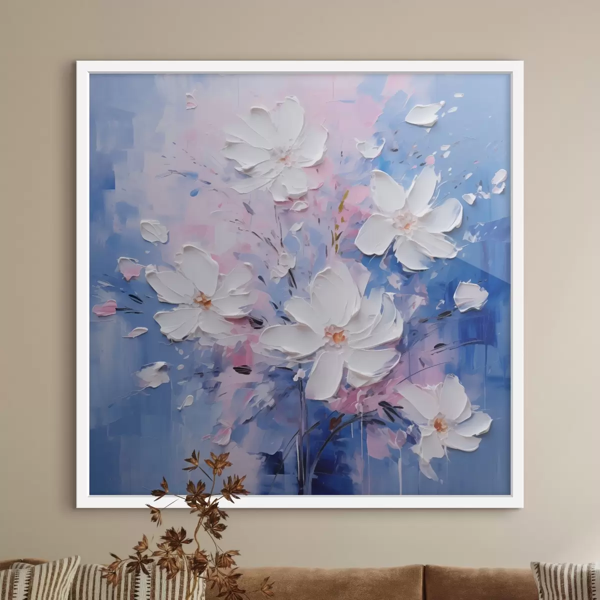 Poster Fiori volumetrici su sfondo blu in stile impasto f45648