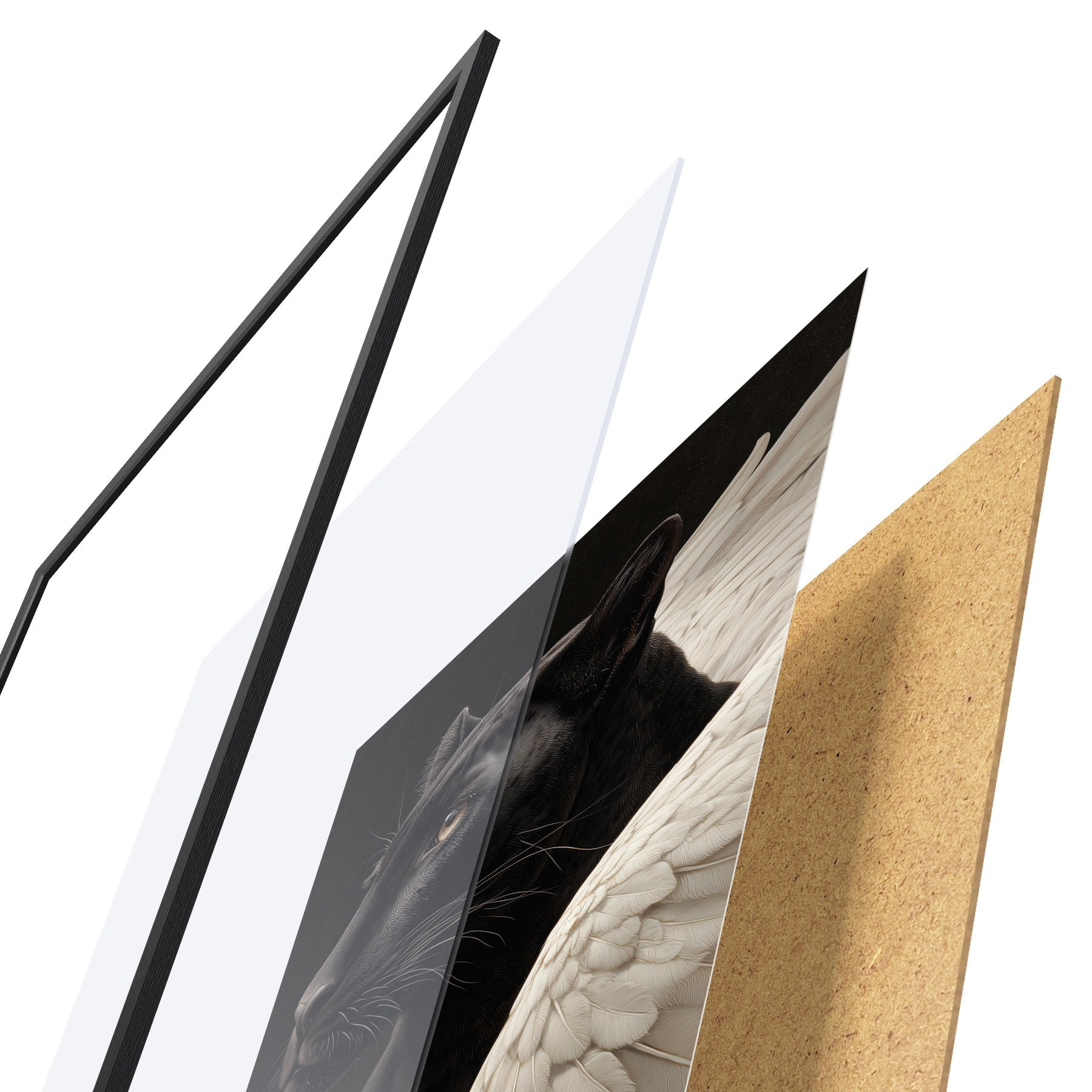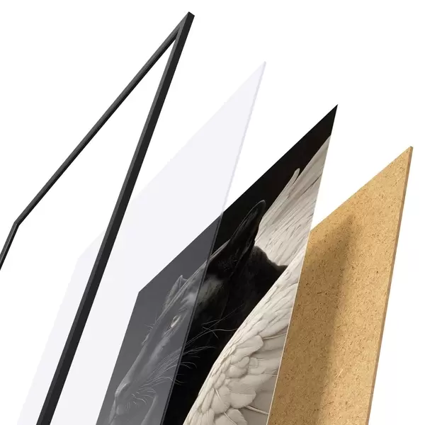 Il poster è composto da cornice, plexiglass, immagine stampata e supporto in truciolato. Il poster può essere immediatamente appeso alla parete grazie ai supporti sul retro.