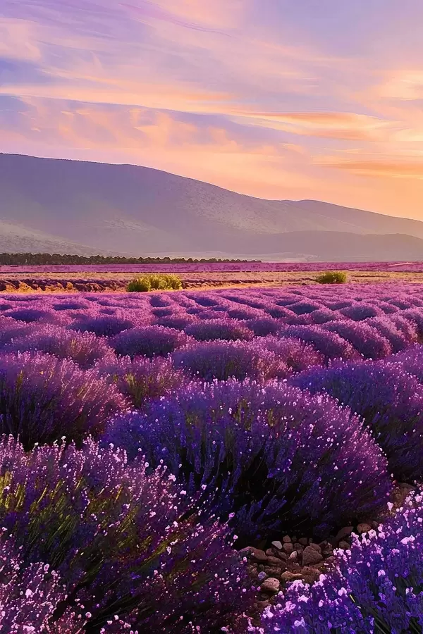 Poster Campi di lavanda sullo sfondo delle montagne f45662