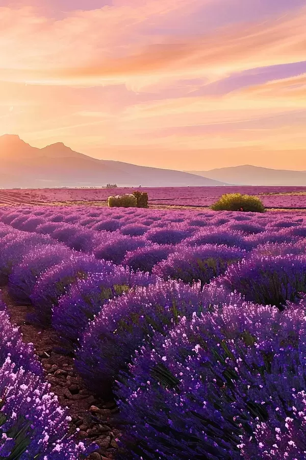 Poster Lavanda sullo sfondo di un tramonto in montagna Nr f45664