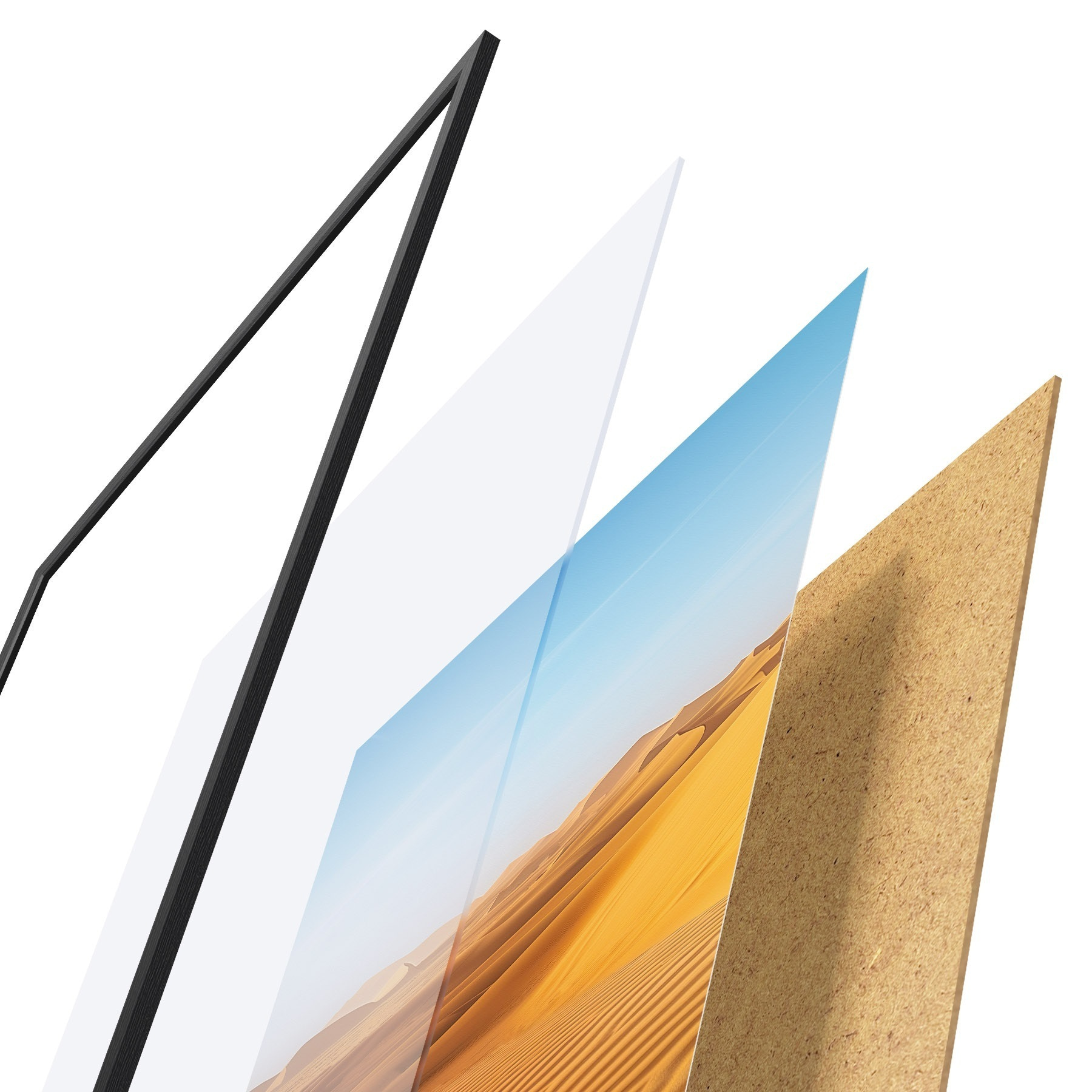 Il poster è composto da cornice, plexiglass, immagine stampata e supporto in truciolato. Il poster può essere immediatamente appeso alla parete grazie ai supporti sul retro.