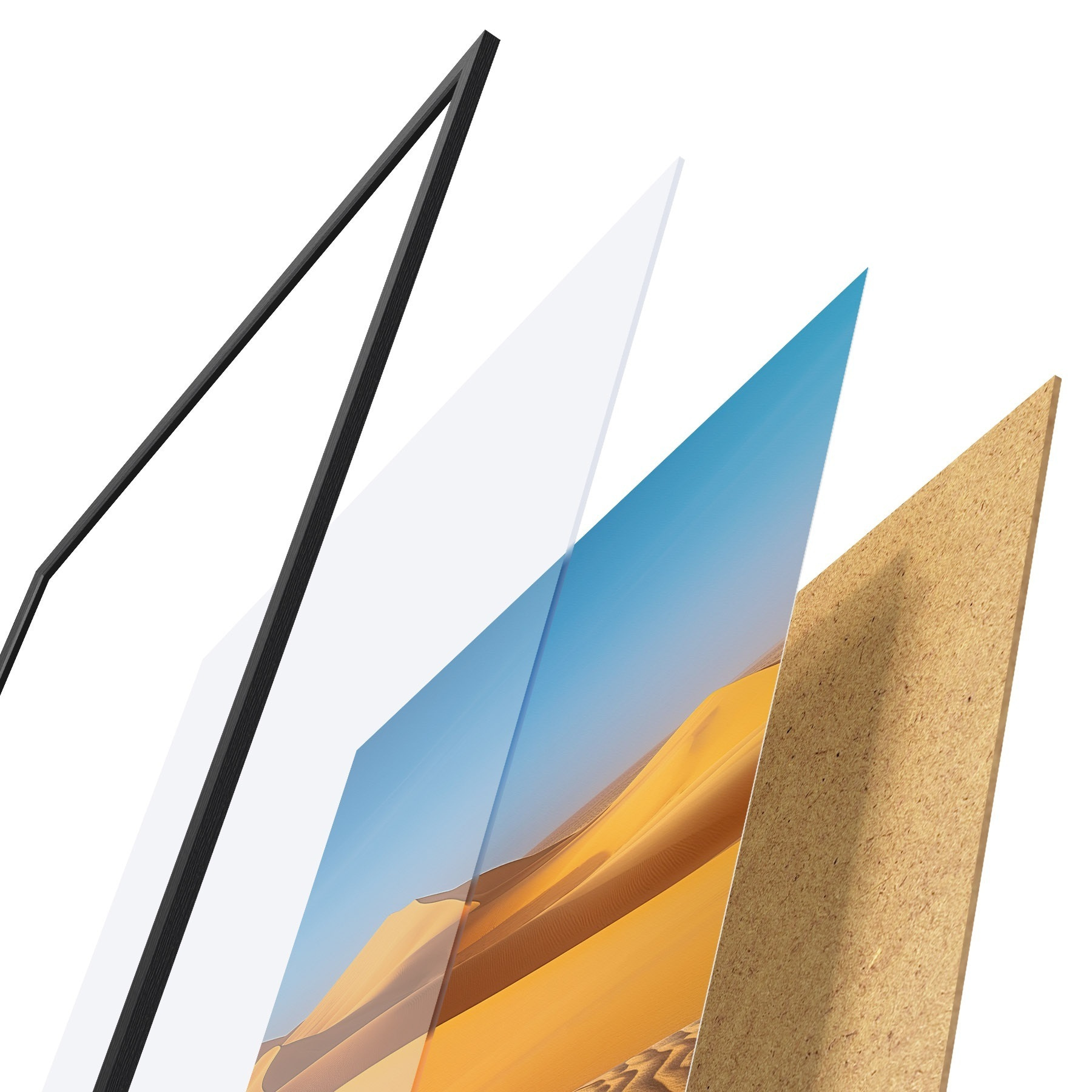 Il poster è composto da cornice, plexiglass, immagine stampata e supporto in truciolato. Il poster può essere immediatamente appeso alla parete grazie ai supporti sul retro.