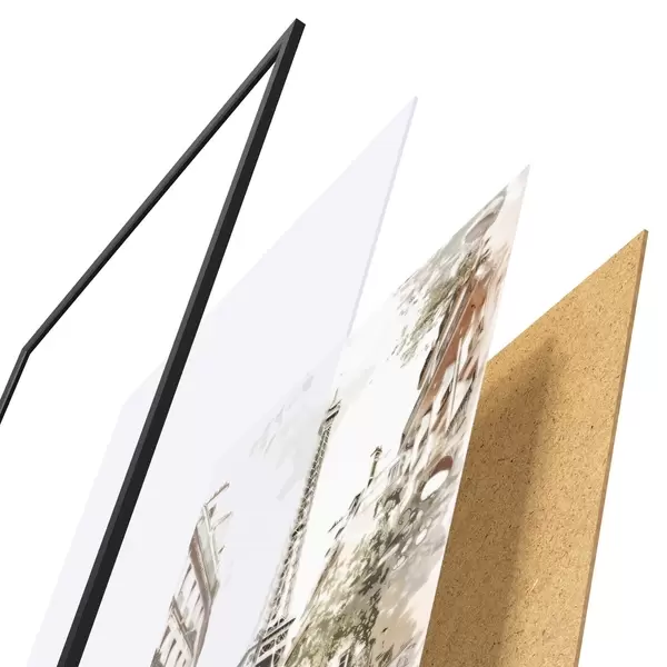 Il poster è composto da cornice, plexiglass, immagine stampata e supporto in truciolato. Il poster può essere immediatamente appeso alla parete grazie ai supporti sul retro.