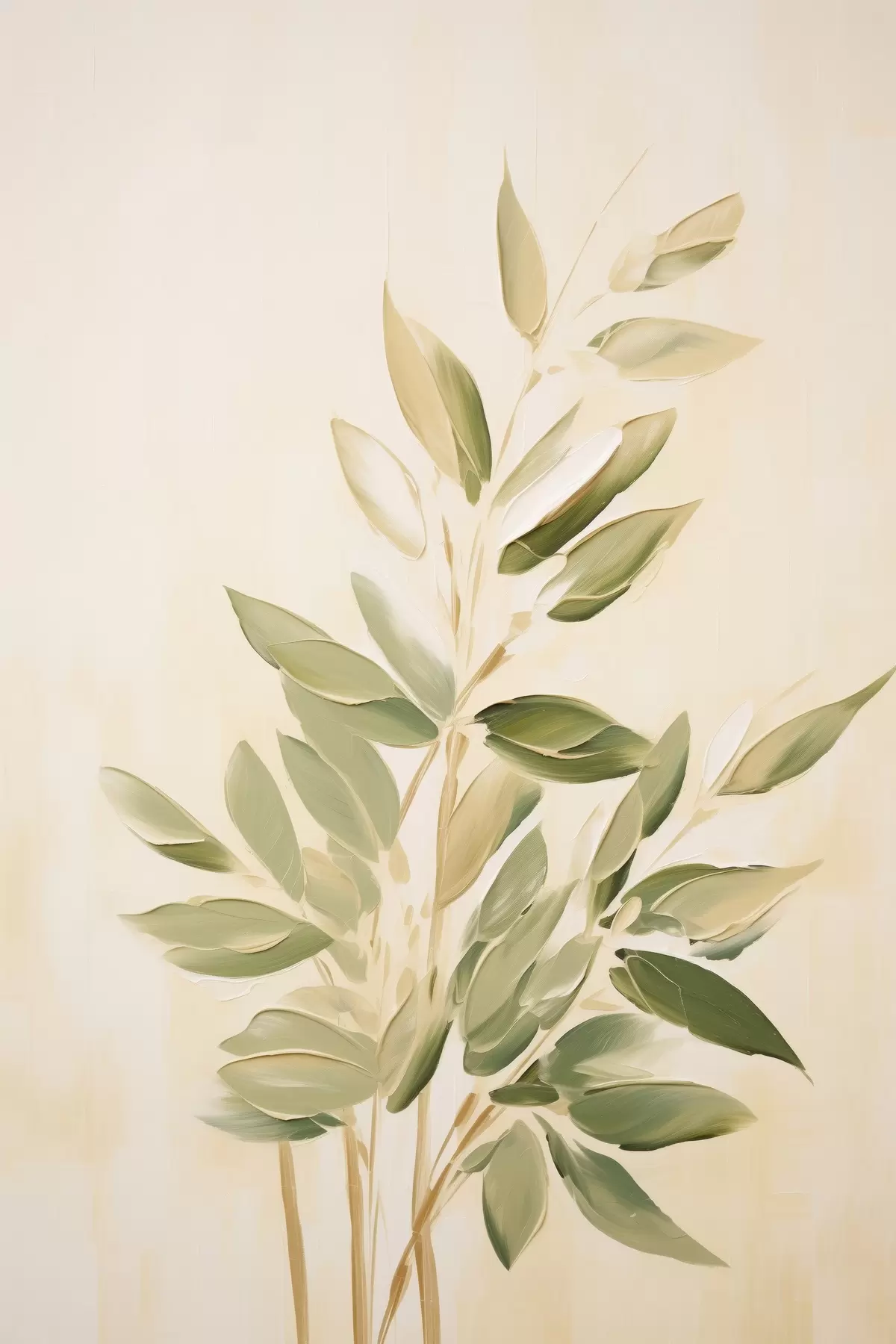 Poster Ramo con foglie verdi su sfondo beige chiaro Nr f45689