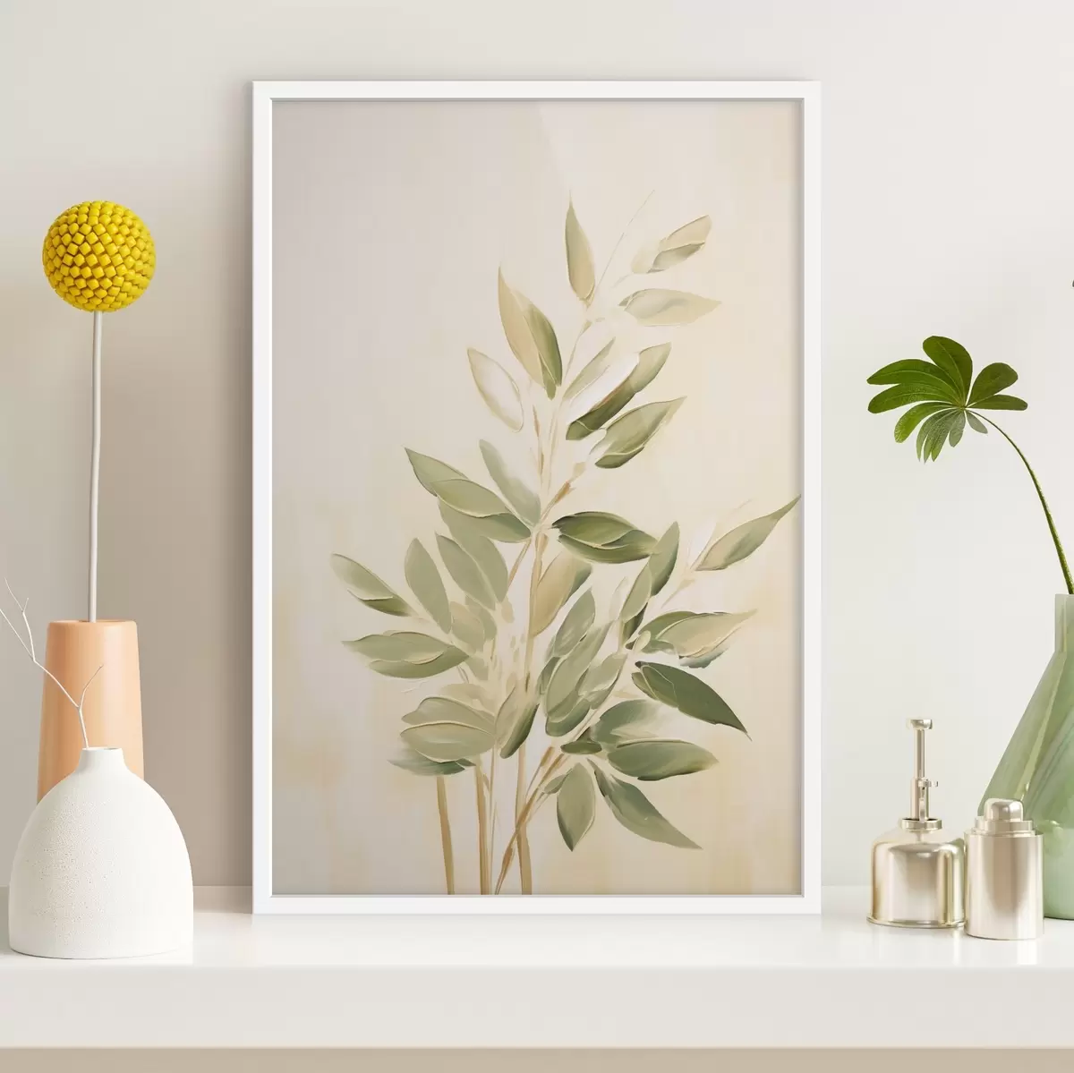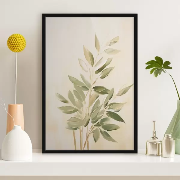 Poster Ramo con foglie verdi su sfondo beige chiaro f45689