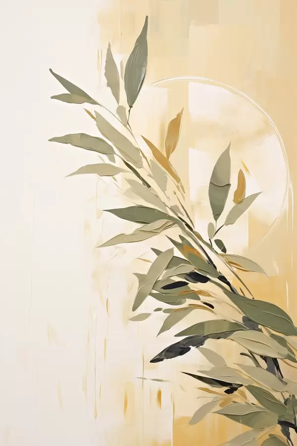 Poster Ramo botanico con foglie verdi su sfondo caldo Nr f45690