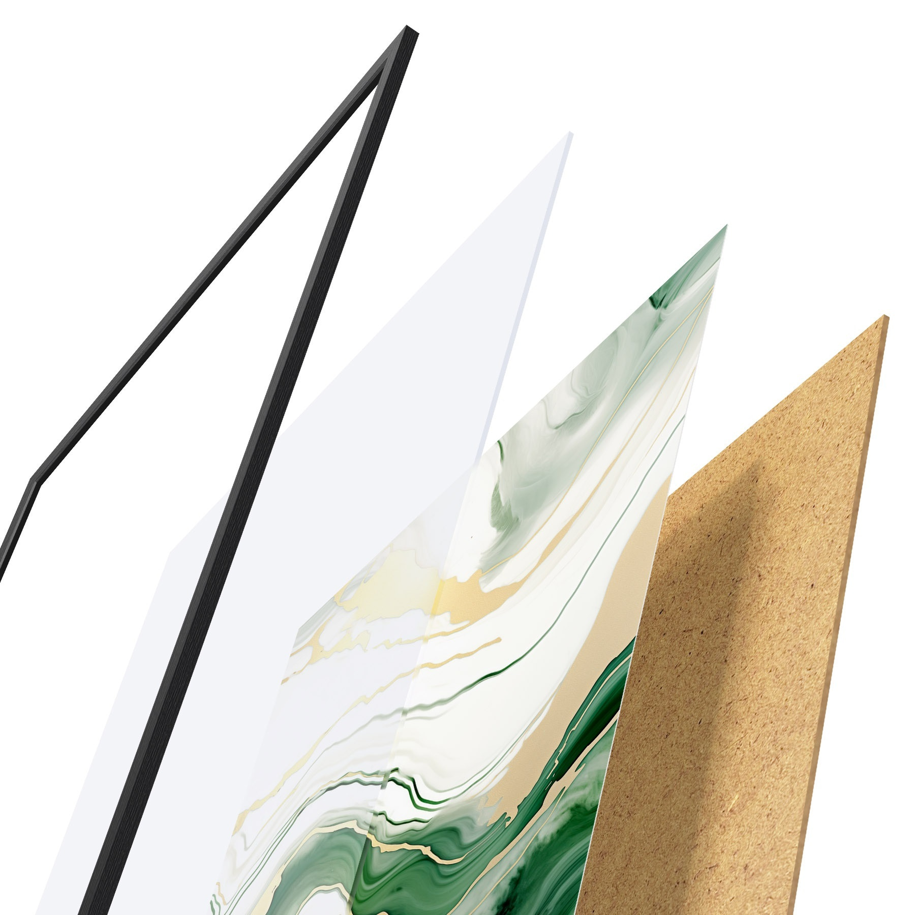 Il poster è composto da cornice, plexiglass, immagine stampata e supporto in truciolato. Il poster può essere immediatamente appeso alla parete grazie ai supporti sul retro.