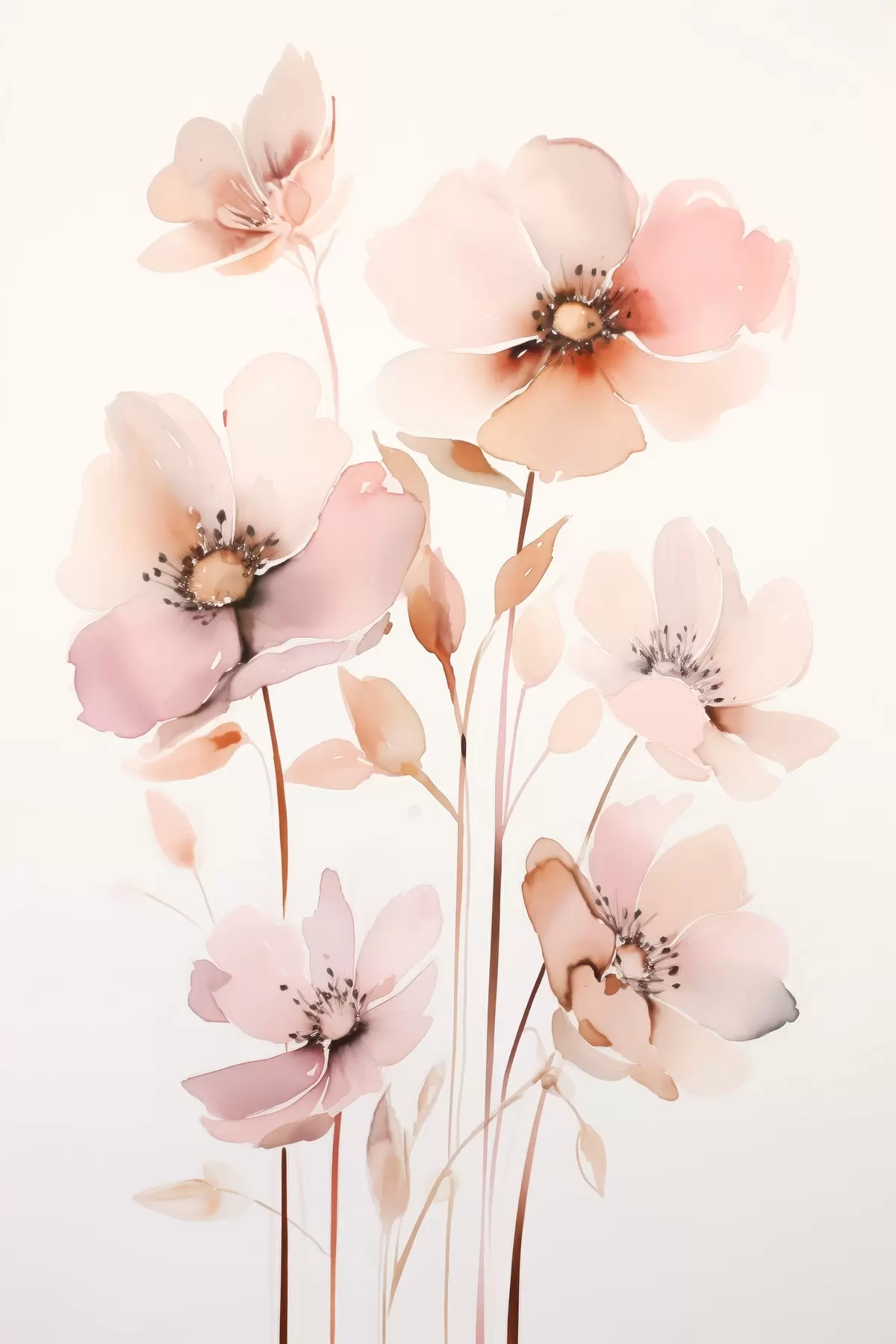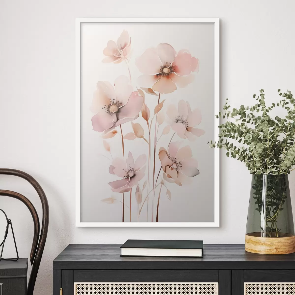 Poster Fiori rosa acquerello su steli sottili Nr f45701