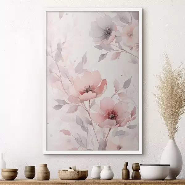 Poster Delicati fiori rosa-grigio con effetto acquerello Nr f45702