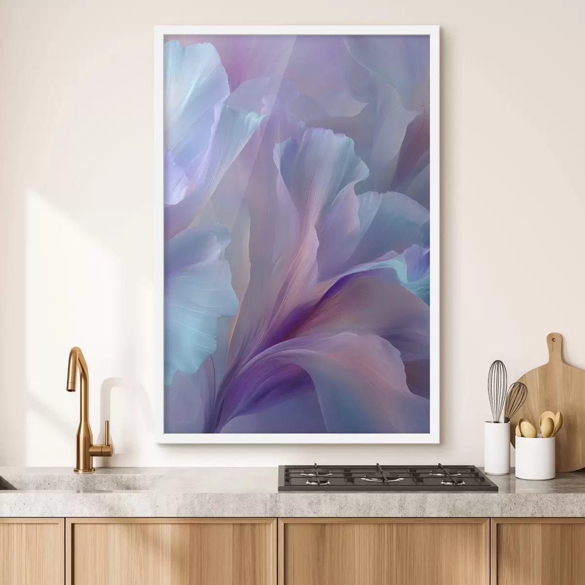Poster un delicato fiore fantastico con petali nei toni del viola, blu e rosa. Nr f45711