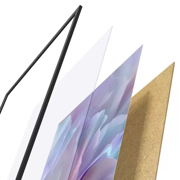 Il poster è composto da cornice, plexiglass, immagine stampata e supporto in truciolato. Il poster può essere immediatamente appeso alla parete grazie ai supporti sul retro.
