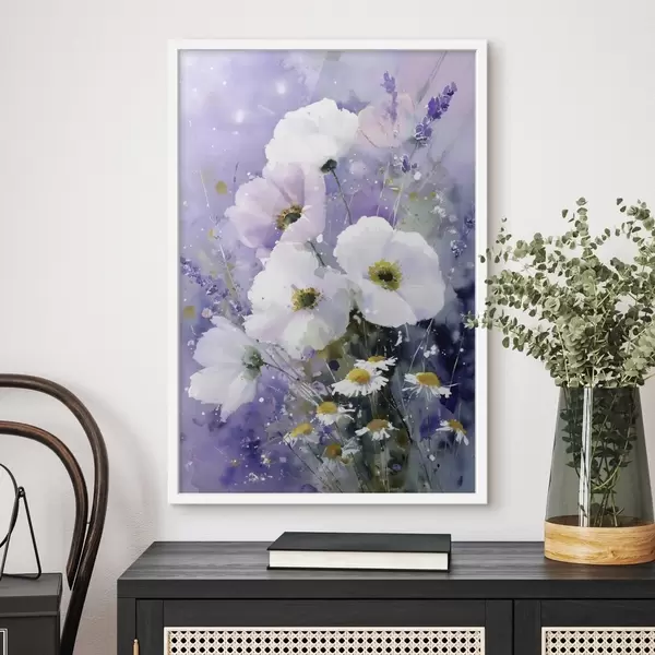 Poster bouquet acquerellato nei toni del lilla e del bianco f45719