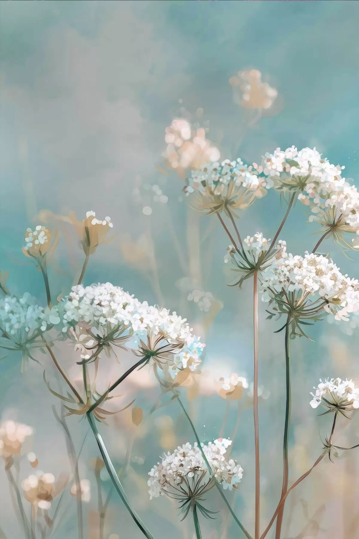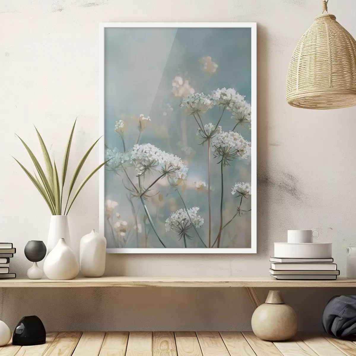 Poster Fiori di Queen Anne's Lace in stile acquerello su sfondo blu Nr f45721